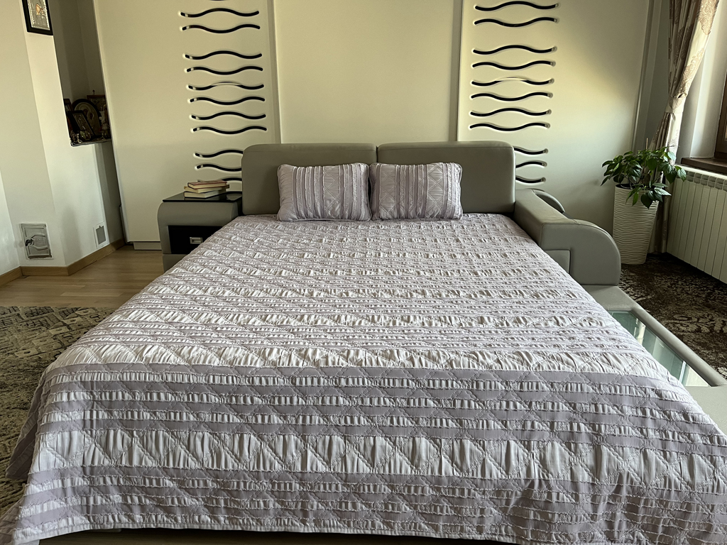 Cuvertura pat decorativă și de protecție CreponTex by Coneltex, cu dimensiunile 220 x 240 cm, este concepută pentru a se potrivi perfect unui pat dublu, oferind atât estetică, cât și funcționalitate.