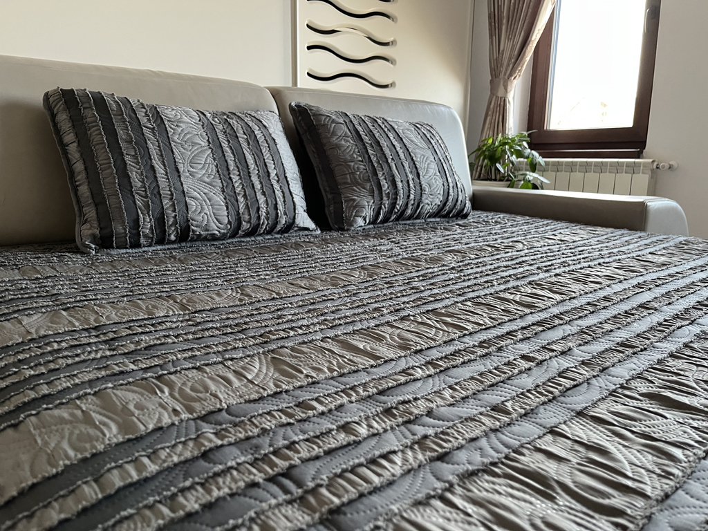 - Design Elegant: Produsele Crepontex sunt caracterizate printr-un design rafinat și modern. Cuverturile și seturile sunt disponibile într-o gamă largă de culori și modele, care se potrivesc perfect cu diverse stiluri de decor. De asemenea, matlasarea acestora adaugă un plus de stil și funcționalitate.