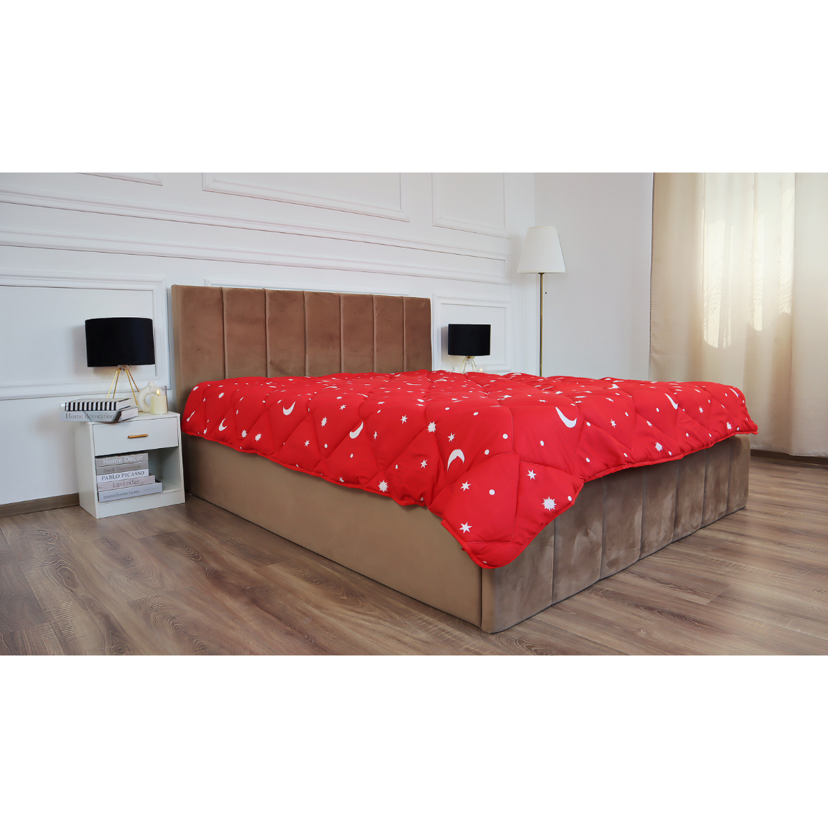 Pilota matlasata “Luna si Stele” Coneltex, dimensiuni 140×210 cm, culoare rosie, umplutura fibra siliconizata antialergica, densitate 350 g/mp