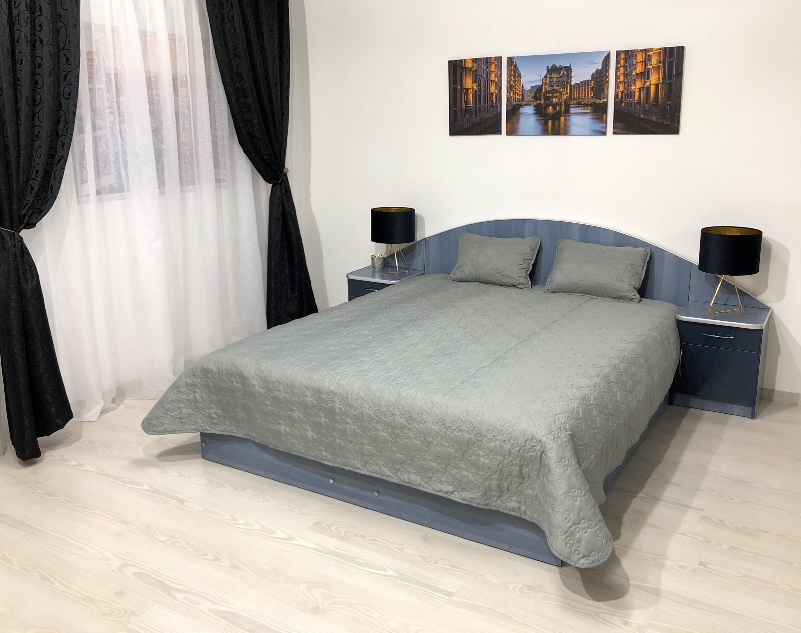 Set cuvertură eleganta de pat, uni-gri.